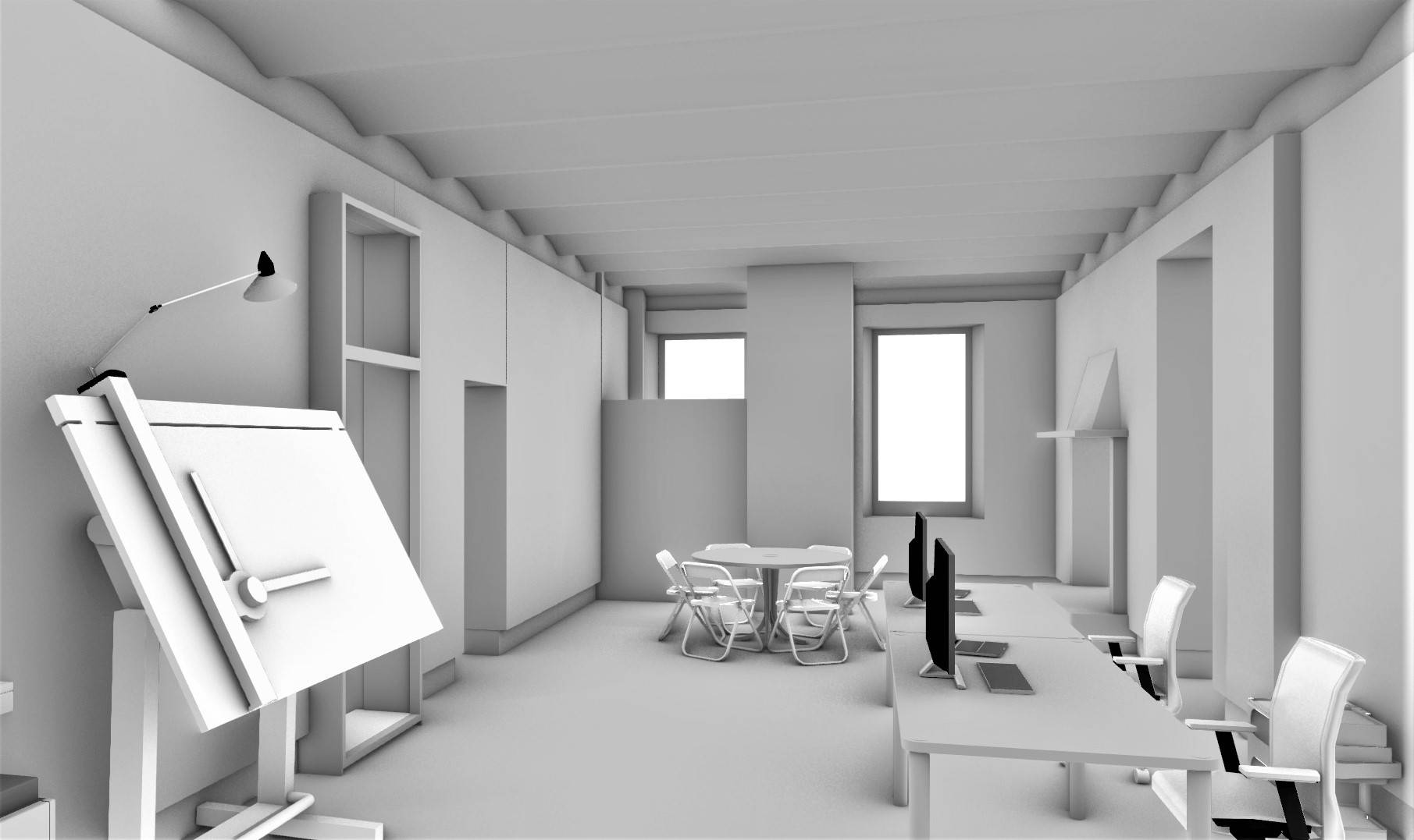 Complete renovation and conversion of a carprentry shop into a professional office, Como area Italy