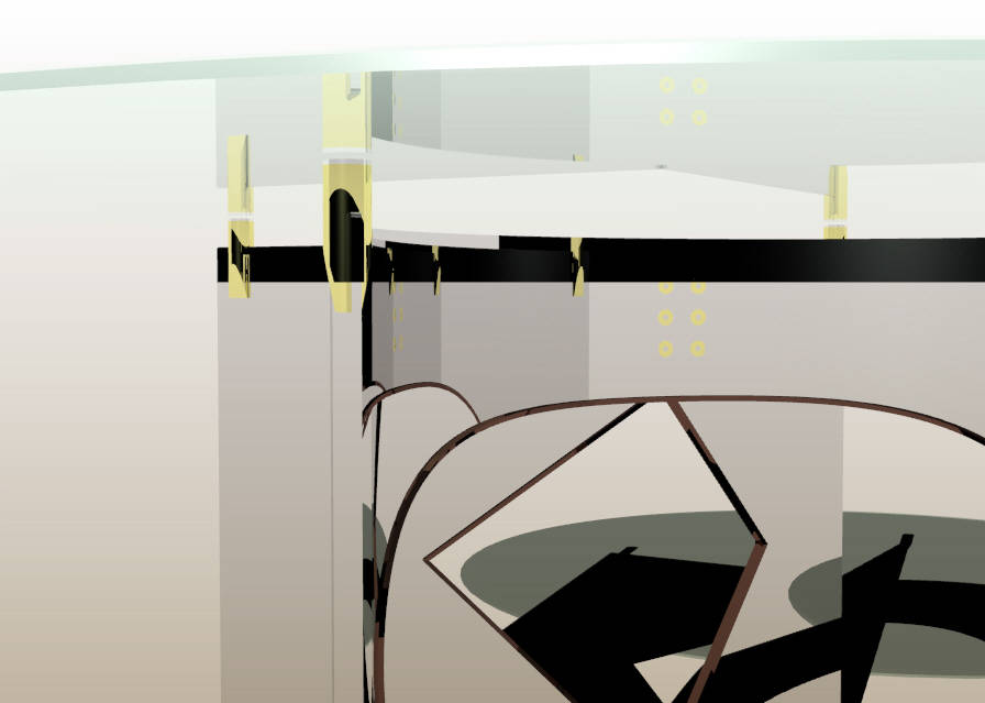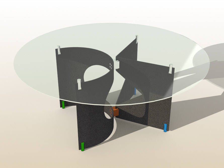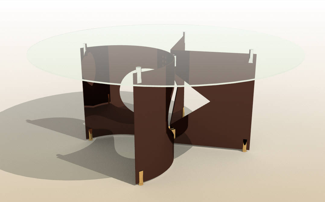 Product design: LOSAS dining table, lacquered or bronzed or mirror polished metal structure with glass top,