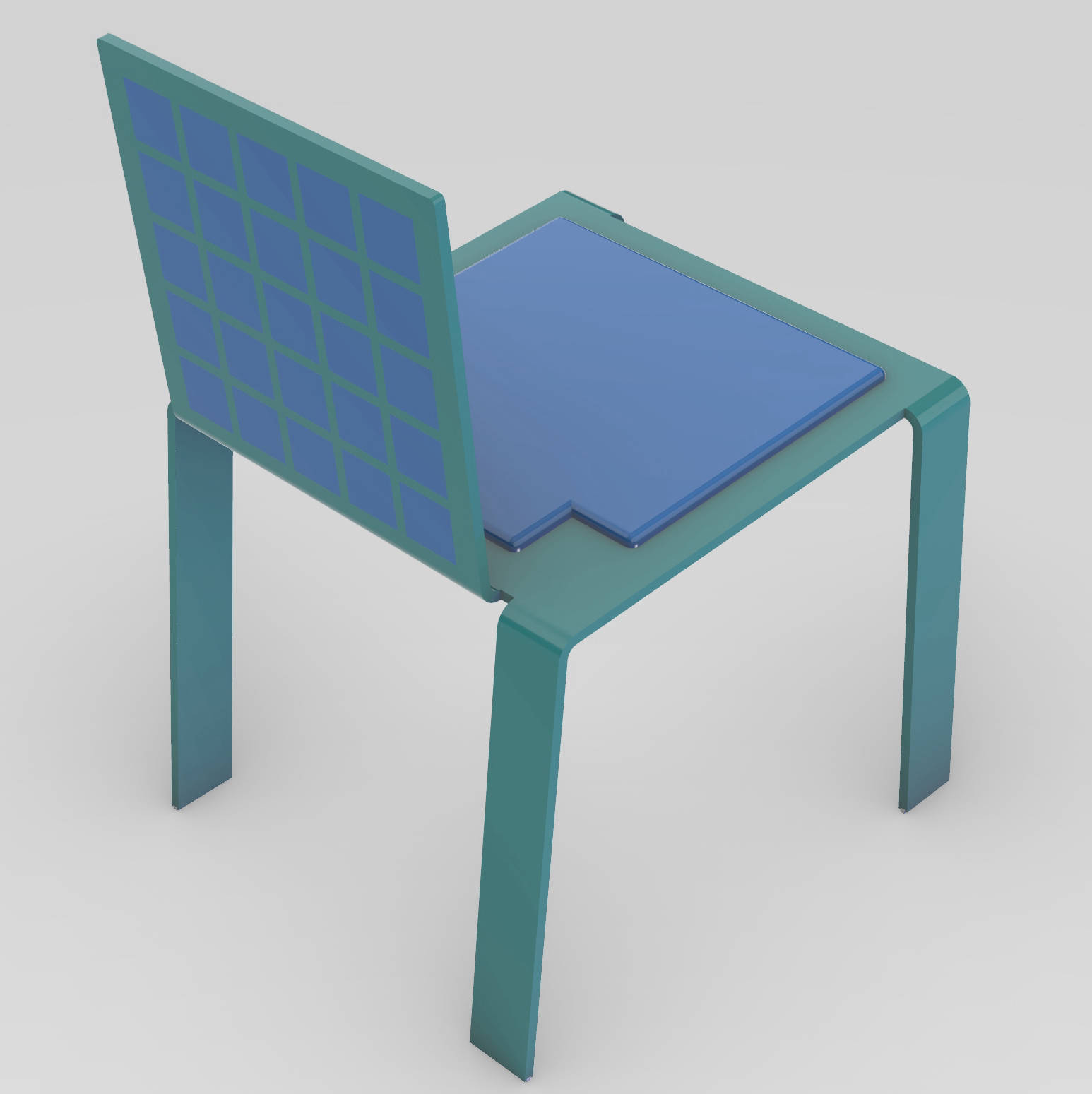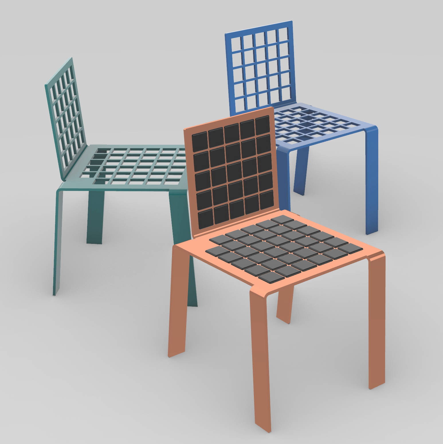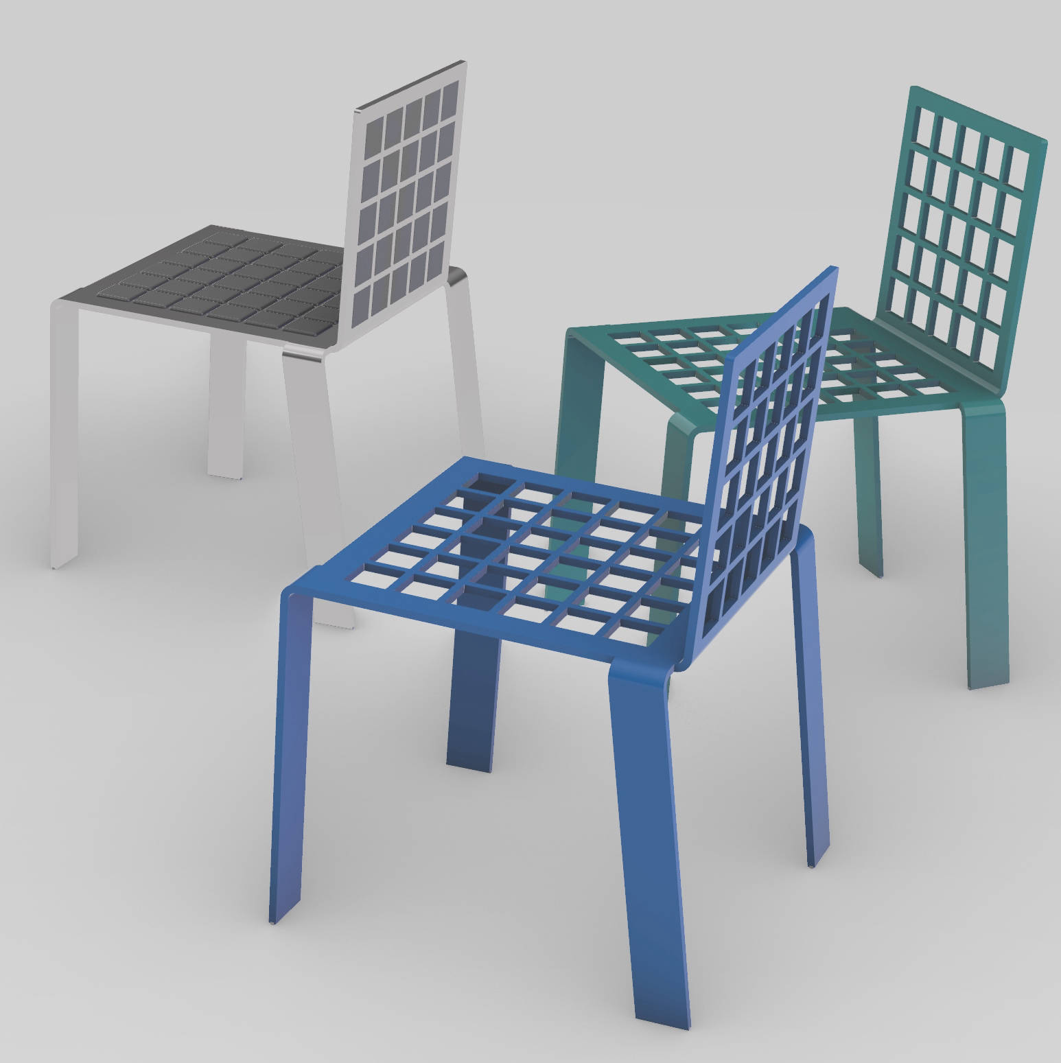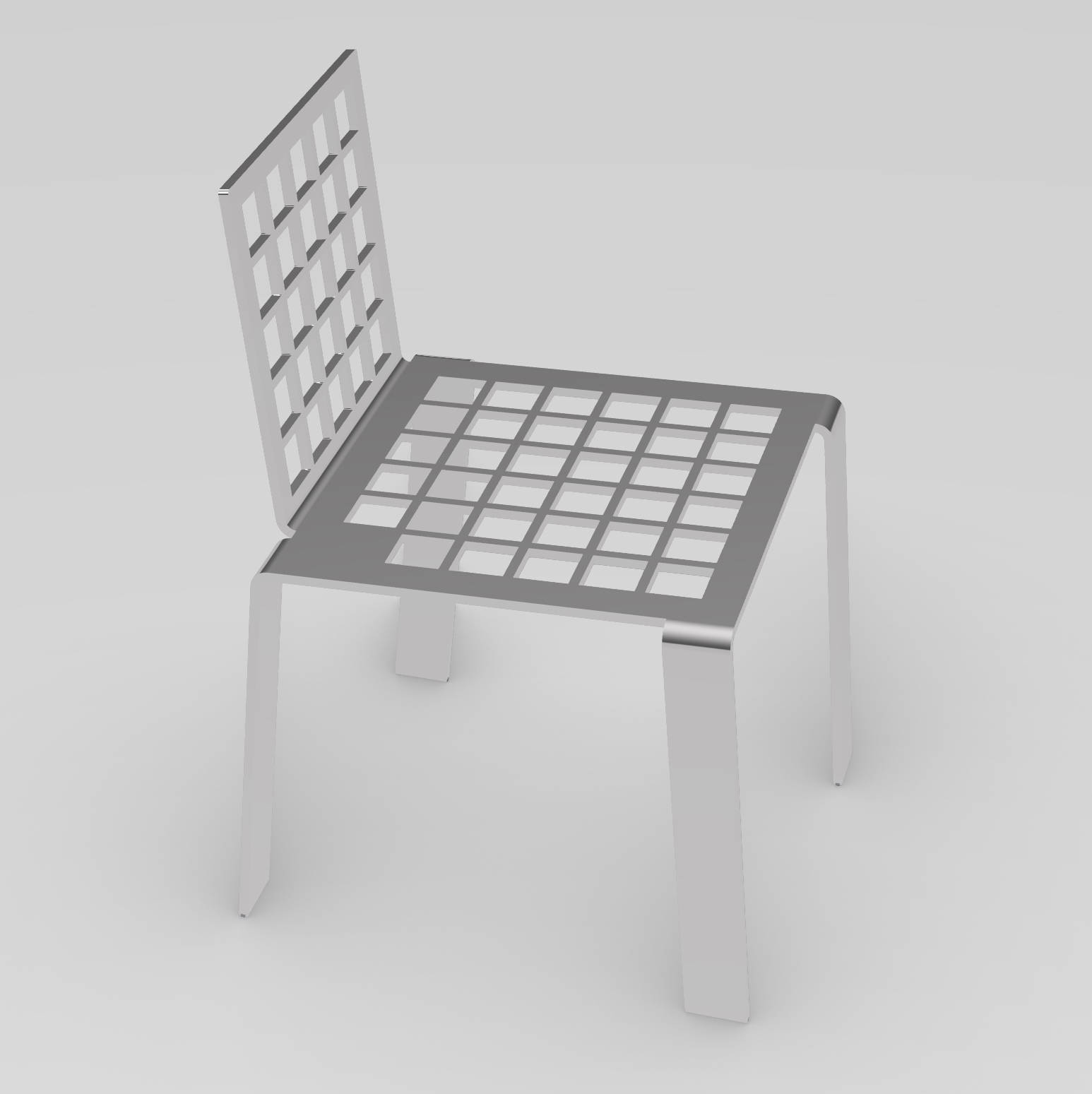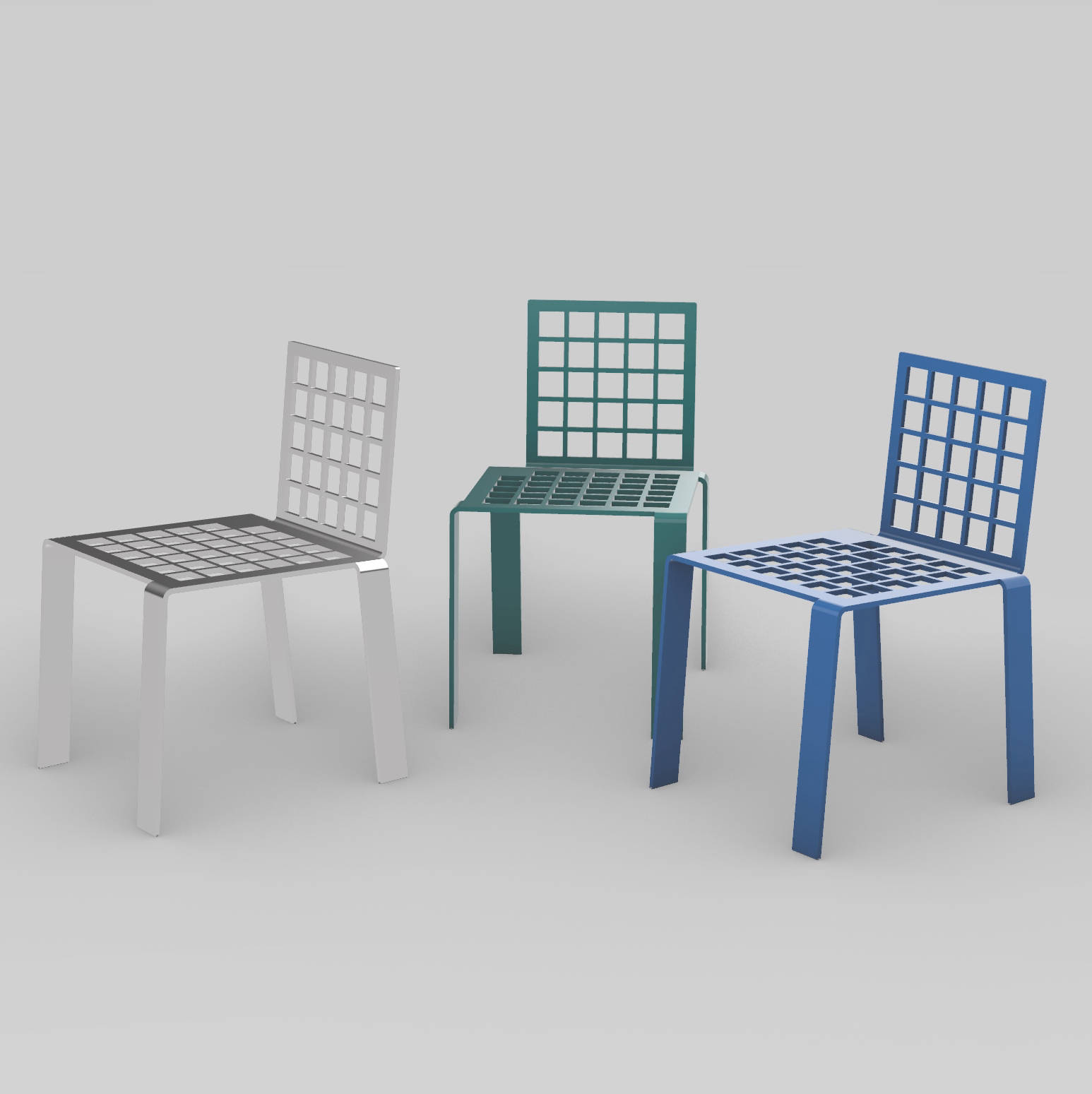 Product design: CHASE METAL chair, anodized or polished aluminum, laser cut and folded from a single sheet, also suitable for outdoor use, © copyright RAYSTUDIO 2021
