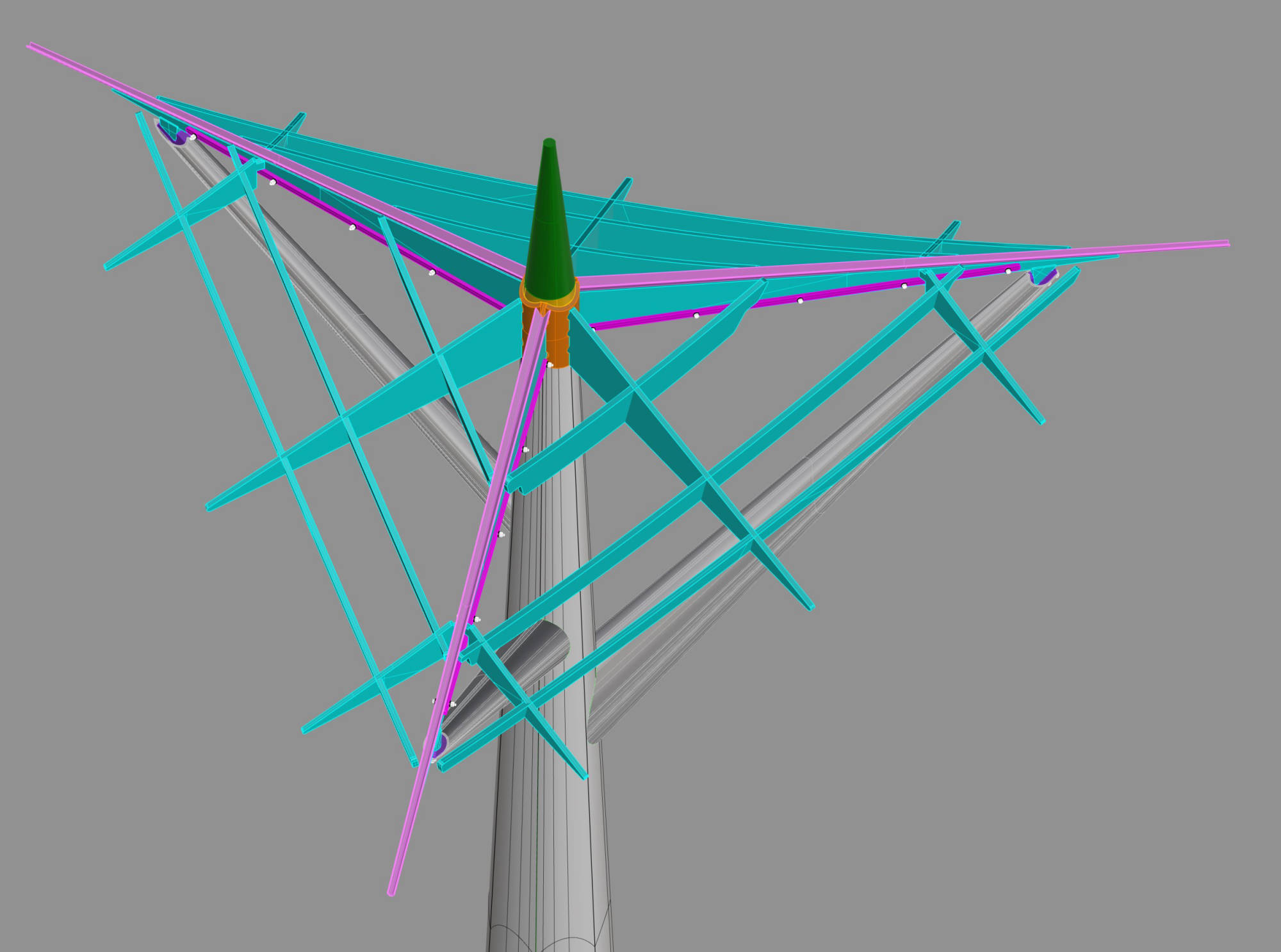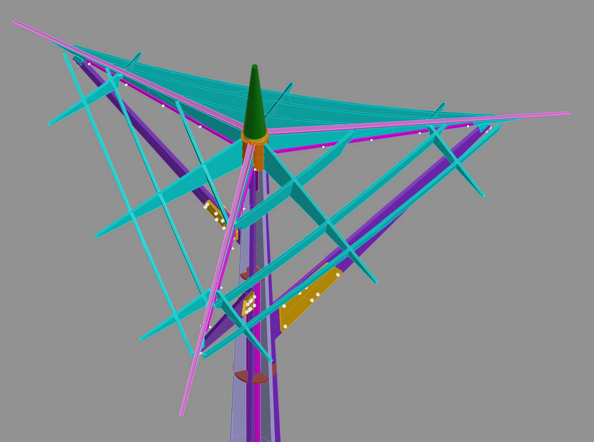 Group of four art installations for the Swiss Triennial of Sculpture in Bad Ragaz (CH), 3.2 meters high, completely in super mirror stainless steel in different thicknesses and shapes. The challenge of the project was developing meticulous production and assembly solutions, analysing even the smallest details to optimize production and to shorten assembly times. No mechanical joints are visible when the sculptures are fully assembled. The engineering process began from the sketching phase, to the cad details, up to the whole 3d mathematics and calculations.