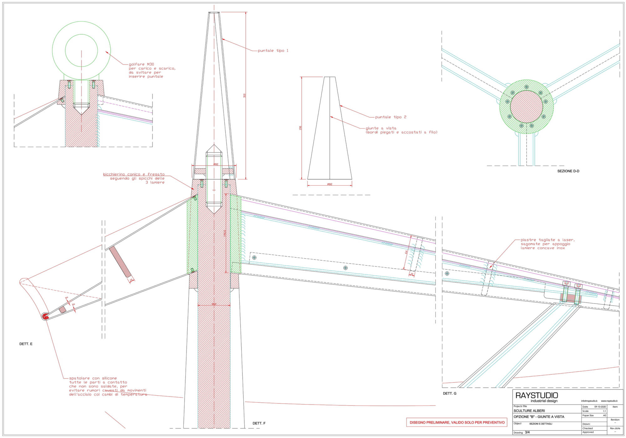 Group of four art installations for the Swiss Triennial of Sculpture in Bad Ragaz (CH), 3.2 meters high, completely in super mirror stainless steel in different thicknesses and shapes. The challenge of the project was developing meticulous production and assembly solutions, analysing even the smallest details to optimize production and to shorten assembly times. No mechanical joints are visible when the sculptures are fully assembled. The engineering process began from the sketching phase, to the cad details, up to the whole 3d mathematics and calculations.